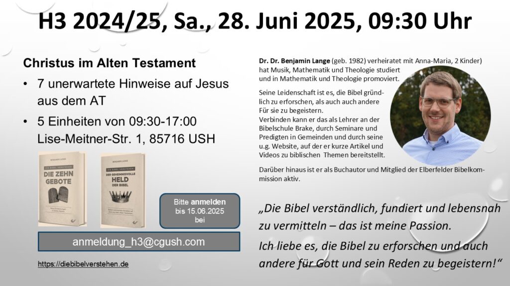 Bitte unter Angabe des Namen und Angabe der Gemeinde anmelden unter: anmeldung_h3@cgush.com (bis 15.06.2025)